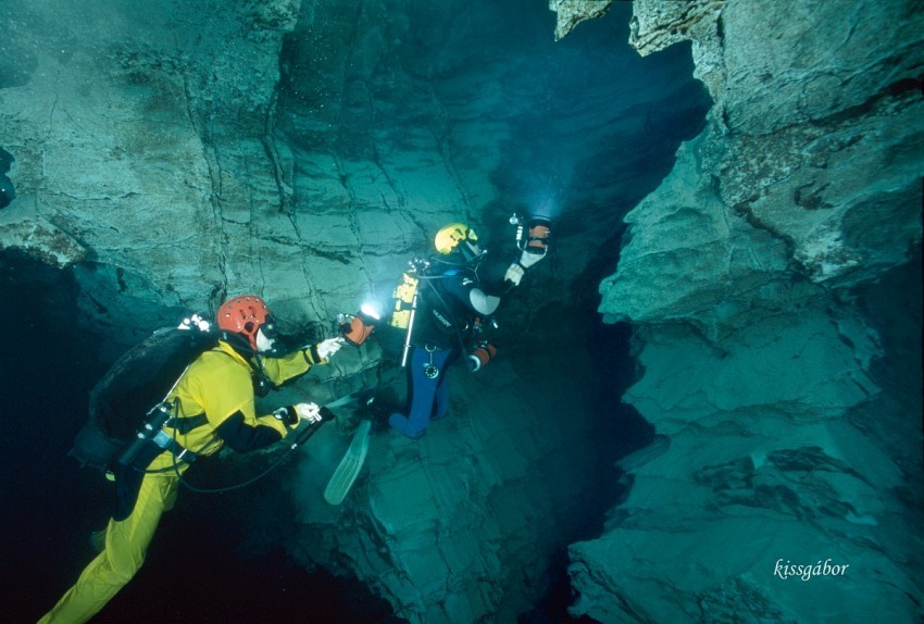 Nearly two decades ago a renowned Hungarian nature photographer, Gábor Kiss was invited to take photographs in the cave. He won numerous awards in underwater photography contests and he was the winner of the prestigious Hungarian Nature Photographer of the Year award in 2004. With the help of the cave divers he made exciting photos and he had the chance to visit the recently discovered new parts of the cave too.